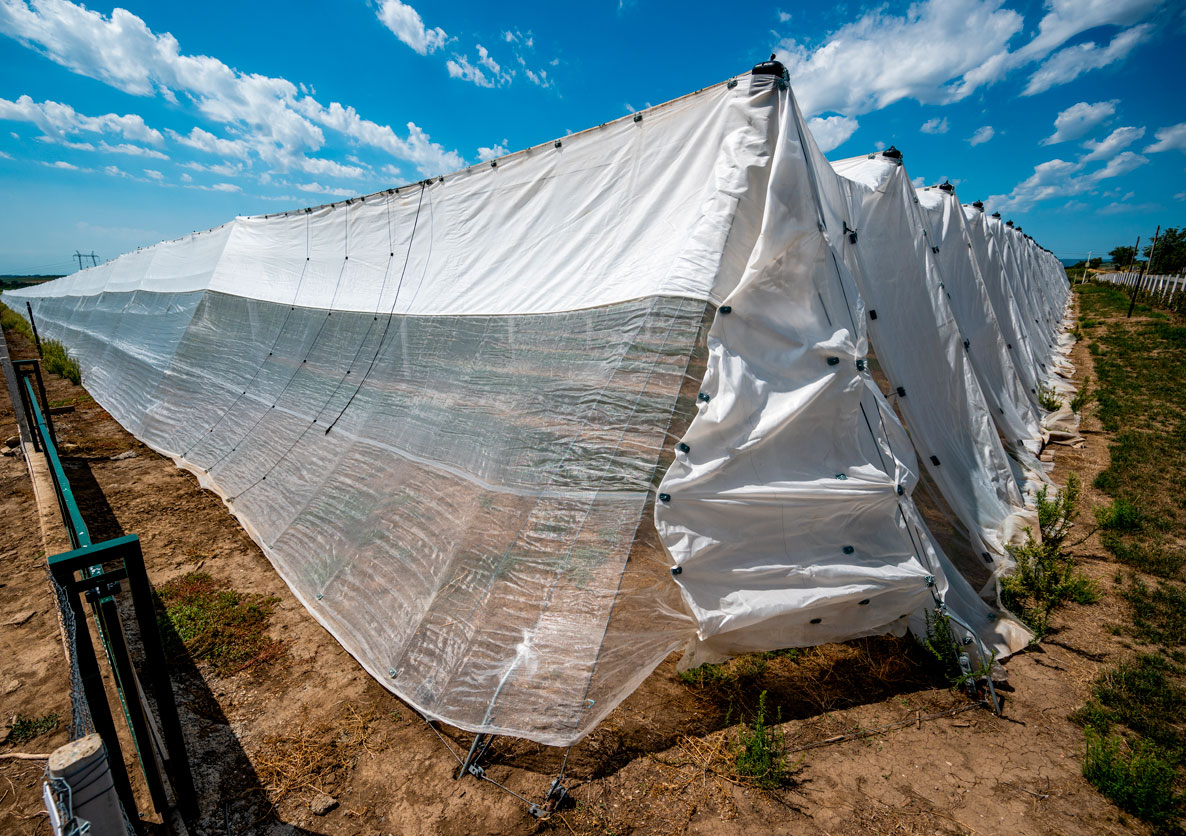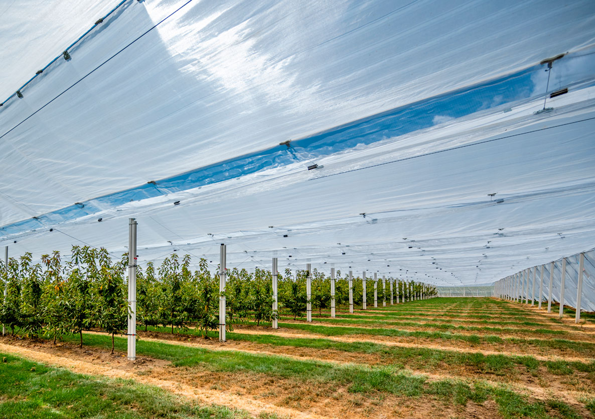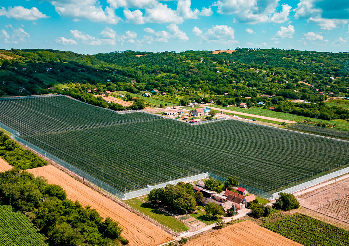 Kompletna mrežna konstrukcija oko zasada — krov i bočne zavese — štiti trešnju od insekata, ptica i vetra. Rezultat su stabilniji kvalitet i sigurniji prinos kroz sezonu.